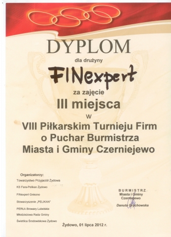 W 2012 drużyna piłkarska FINexpert zajała 3 miejsce zdobywając puchar ufundowany przez Panią Burmistrz Miasta i Gminy Czerniejewo. Organizatorzy oprócz głównego turnieju piłkarskiego przygotowali szereg atrakcji dla zawodników biorących udział w meczach. Dodatkowo odbył się konkurs strzelania rzutów karnych do pustej bramki oraz konkurs strzelania z wiatrówki. W obu konkurencjach brali udział szefowie firm i zawodnicy.