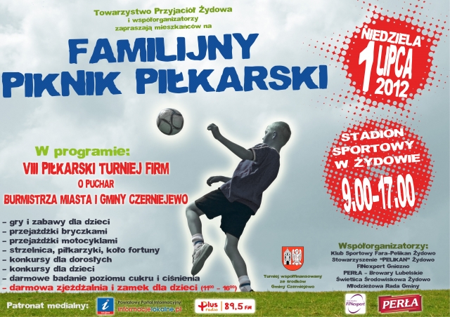 W Niedziele, 1 lipca odbył się tradycyjny, ósmy już Letni Turniej Piłkarski Firm. Miejscem rozgrywek był podzielony na cztery mniejsze boiska stadion sportowy w Żydowie. Organizatorami turnieju byli Towarzystwo Przyjaciół Żydowa, FINexpert (zwycięzca poprzedniego turnieju), Klub Sportowy Fara-Pelikan Żydowo, Stowarzyszenie Pelikan, Młodzieżowa Rada Gminy, oraz PERŁA Browary Lubelskie. Główne trofeum oraz nagrody dla zwycięskiej drużyny fundowała Burmistrz Miasta i Gminy Czerniejewo. Patronem medialnym turnieju było m.in. Radio Plus Gniezno.
